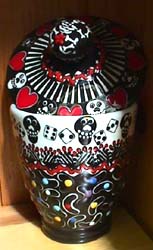 designs. Images of skeletons, dice, hearts strung on barbed wire, floral